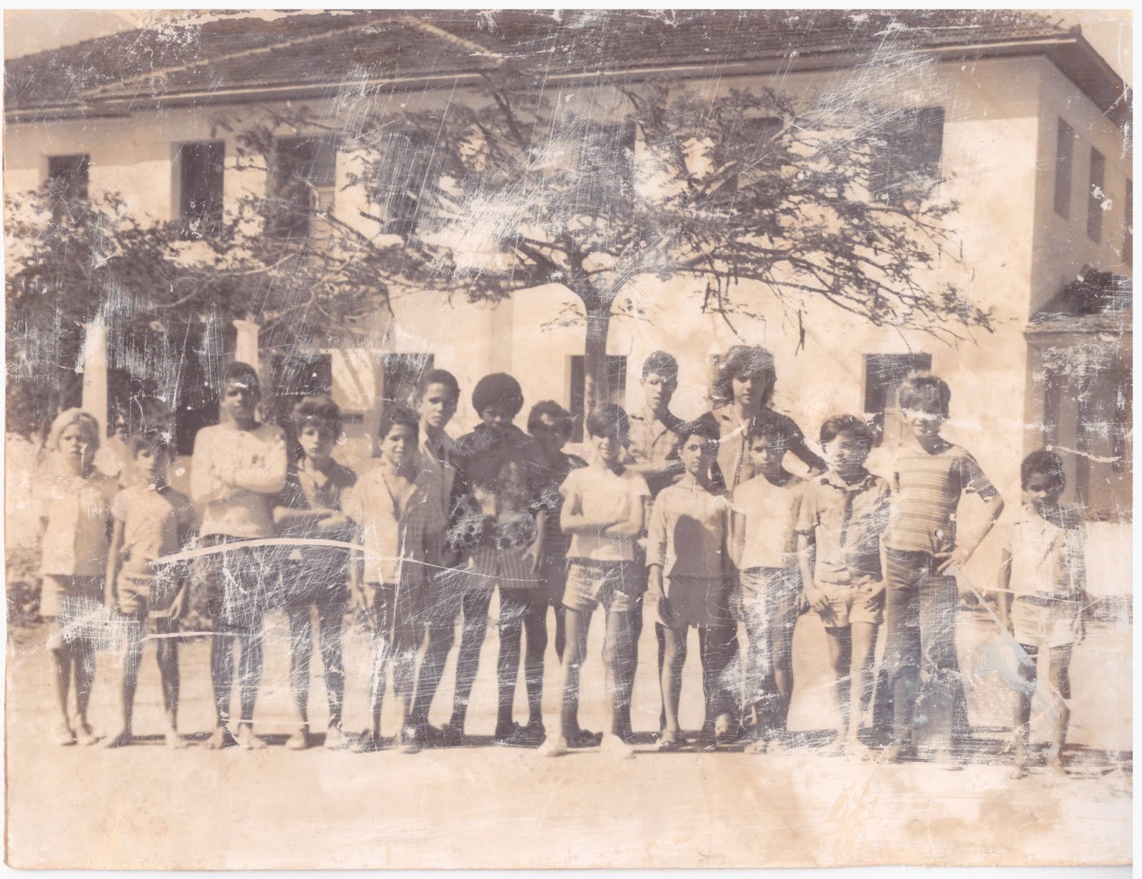 Crianças e adolescentes. Granja Eunice Weaver ao fundo. Sem data. Acervo: EAB.